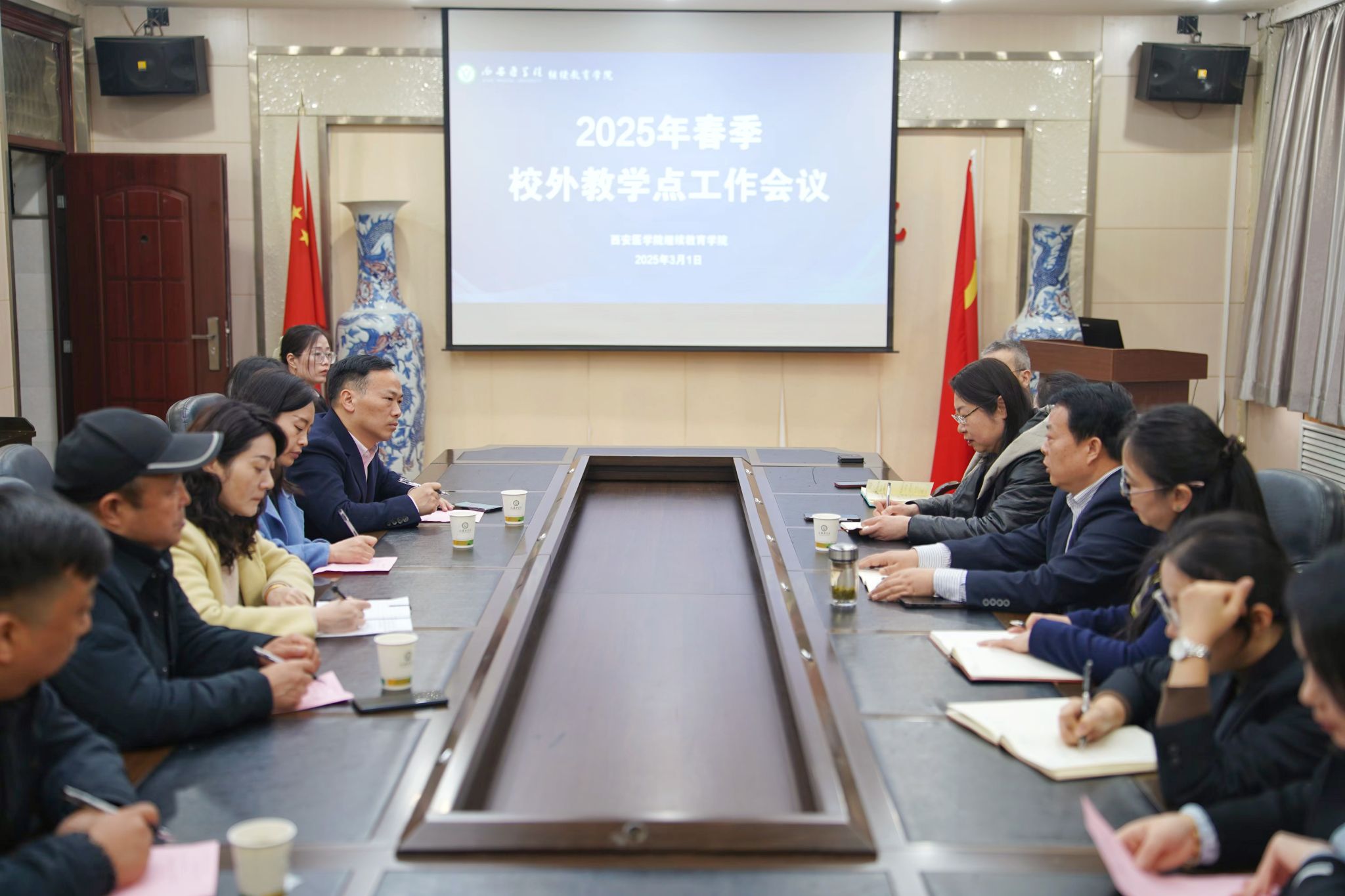 3月1日上午,公司召开了2025年春季学期校外教学点工作会议,公司经理崔军海、副经理李新华和省高教系统职业中等专业公司董事长陈禹、市鄠邑区卫生培训中心主任高春风以及公司和校外教学点有关人员参加了会议。由公司副经理李新华主持。