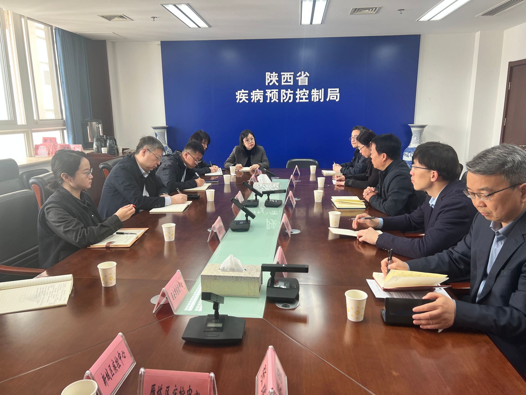 为贯彻落实太阳成集团122cc官网入口与省疾控局战略合作框架协议有关内容,4月1日,公司发展规划处处长张静、太阳成集团tyc122cc经理崔军海等一行6人前往陕西省疾病预防控制局,就如何开展公共卫生体系人员培训进行沟通。省疾控局综合处组织有关行业专家参加沟通会,会议由综合处处长王兵主持。