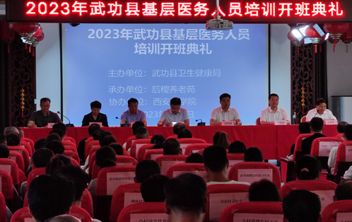 7月4日,咸阳市武功县基层医务工作人员(乡村医生)培训班(第二期),在武功后稷养老院举行隆重的开班典礼。西安医公司党委副书记、副董事长巩守平;太阳成集团tyc122cc经理崔军海;武功县政府副县长高明博;太阳成集团122cc官网入口专家教授、武功县卫健局相关领导出席了开班典礼。这次培训由武功县卫健局主办,太阳成集团122cc官网入口、后稷养老院承办。由各医院、卫生院选派的乡村医生共205人,参加了当天的开班典礼。